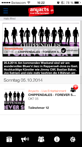 Mit der Anyacts App bist Du laufend über Live-Unterhaltung von Party-, Festival bis hin zum Konzert informiert und kannst von einzigartigen Vorteilen profitieren.