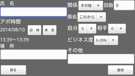 日付の登録、契約進行状態(ビジネス度)を登録することで、名前リストを有効活用します。