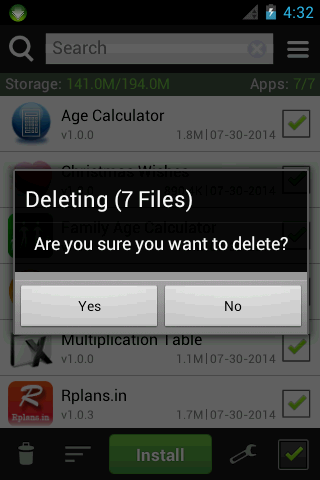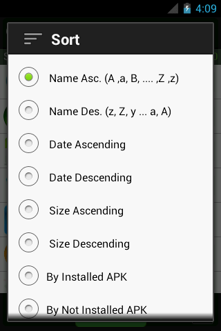 Apk installer gives list of all apk files available on your SD card to easily install & delete. You can type the keyword in the textbox in the top to search the apps that you want to install. Long click on the specified app in the list, there will be a popped up context menu to provide more options.