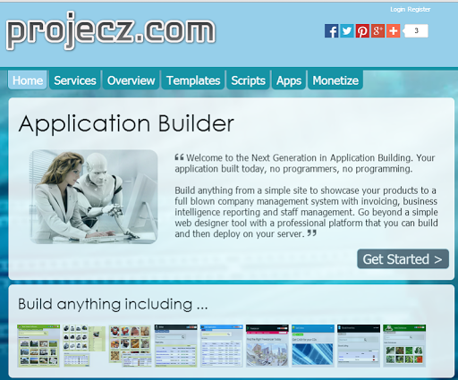 projecz.com is designed to allow 100% generation of complex applications without requiring any programming. The philosophy behind projecz.com is that an application is based on the relationship between the data contained and the presentation of those relationships. Based on this philosophy complex applications are created from the design of the database and the styling of the application. With this in mind very complex applications can be built very quickly without long development time. Eliminating the need to build functionality such as forms, database record management, user management, validation and many other features that are an important part of any application development, projecz.com concentrates on the most important aspects of your application - your data, the relationships between your data and how this is presented to the user.