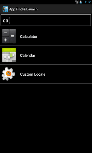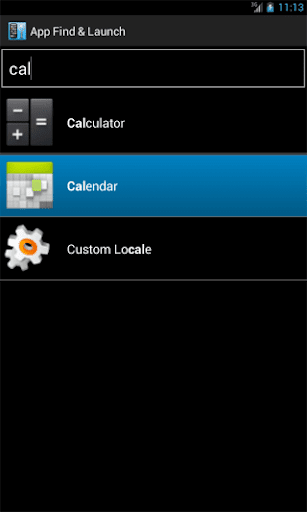 You type the name of the App and it appears. Select the App to launch it. Note that the start-up of 'App Find & Launch' may be slow on older phones. A dual core processor is recommended to use 'App Find & Launch'.