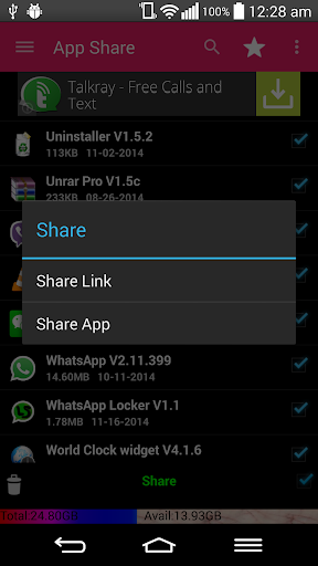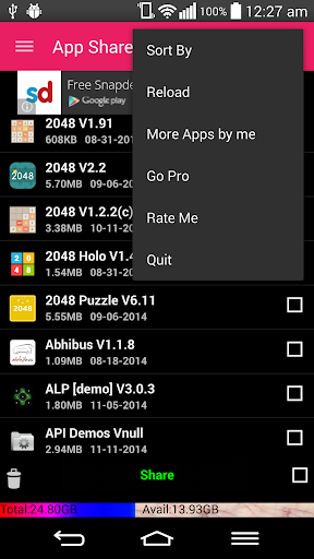 This is the only app in market to share both app apk file and the link.