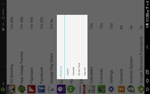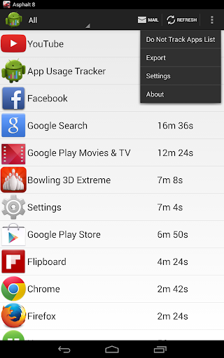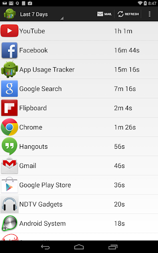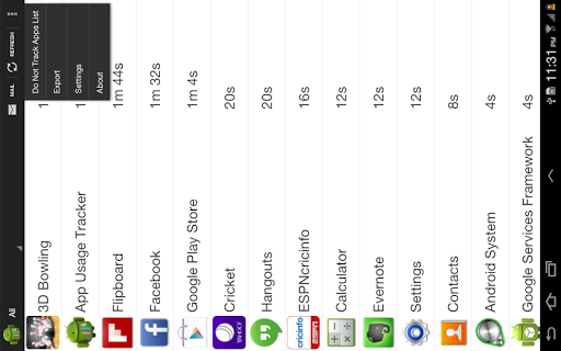 This App Usage Tracker app tracks what all apps are getting used on the device, and depicts the same in a graphical format. The usage stats can be exported out as well.