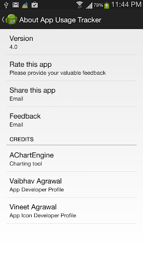 Note: This app starts tracking only when it is first launched after install / upgrade. Also, this app doesn't ask for INTERNET permission, so it cannot upload any usage data automatically without your consent.