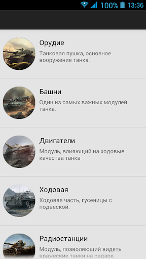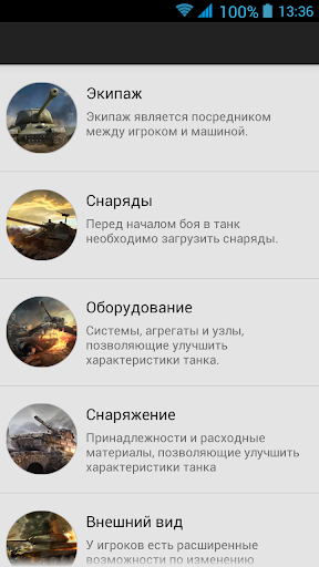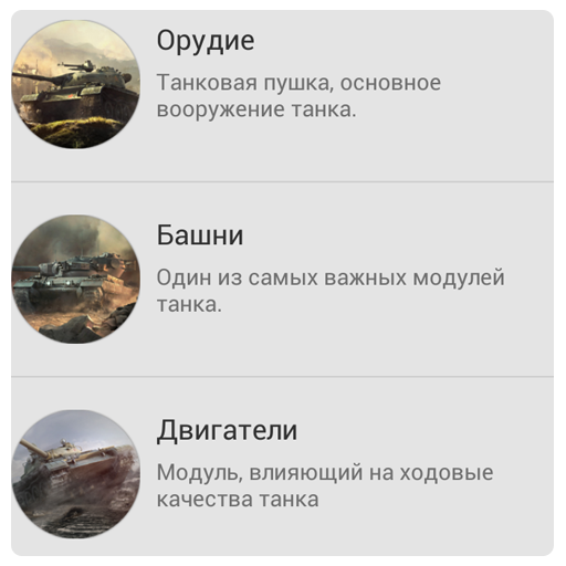 Приложение по игре "World of Tanks" содержит описание по модернизации и комплектации танковой техники
