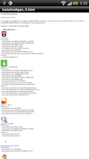 Write down all installed applications into the text or html file and save it on memory card into the InstalledApps directory.
