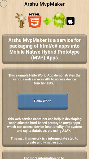The Web/Service Container can help in developing Sophisticated Html5 based MVP apps which can access Device Functionality, File System, SQLite Database, Bluetooth, Nfc, UDP Peer, etc using AJAX.
