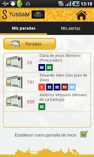 En la pantalla inicial se incluyen los últimos avisos de TUSSAM a través de Twitter, que permiten conocer las incidencias existentes en la red, o cualquier otra información de interés.