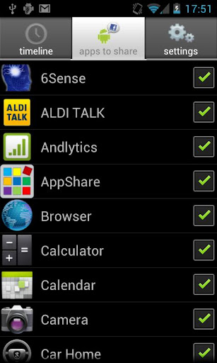 AppTicker provides you this opportunity to share the apps you use and love on facebook. Whenever you use, install, update, or remove an app it can be shared with your facebook friends. After you installed AppTicker you can connect to facebook and configure which of your actions are shared. Depending on your configurations, specific events, such as usage and installations are posted on your Facebook timeline.You can fully control the privacy setting of sending actions to faecbook. AppTicker also provides you a history of the apps you have used on your mobile phone.