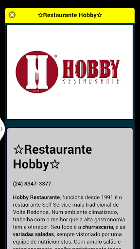 - Públicos: Informações públicas como horário de ônibus, telefones públicos e Pontos turísticos e históricos de Volta Redonda.