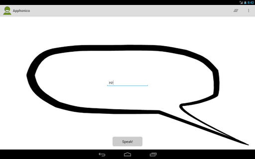 Thanks to the TTS (Text To Speech) system integrated on your device, this app is able to read whatever you write on the speech bubble.