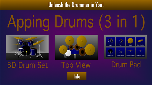 This App features Drums in 3 Views: 3D View, Top View and Drum Pad. You can play all the Drum Sets, then decide on the one that best suits you!