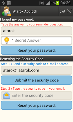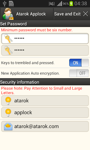 Atarok Application Lock, Messages, Files, Photos, Videos, Notes, Mail, Music, etc., Play Store, DropBox, Contacts, Settings and Internet Applications Passwords