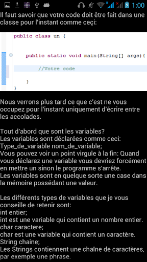 Cette application vous permet d'apprendre le java facilement (application en français).