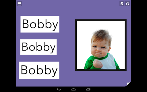 The child will be introduced to two-syllable words and their pronunciation, by tapping each word.