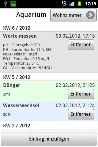 Diary to track your periodic fish tank maintenance. As an example this could be water change, measure water values or the weekly cleanup of your filter (check out the feature list).