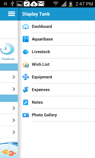 • Visually keep track of tank inhabitants and equipments with Timelines,