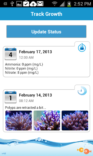 Aquarimate can help you record your test results, analyze changes, visually track your livestock, setup tasks and reminders, log your activities, store your livestock and equipment, take notes, track expenses, build photo galleries and so much more..