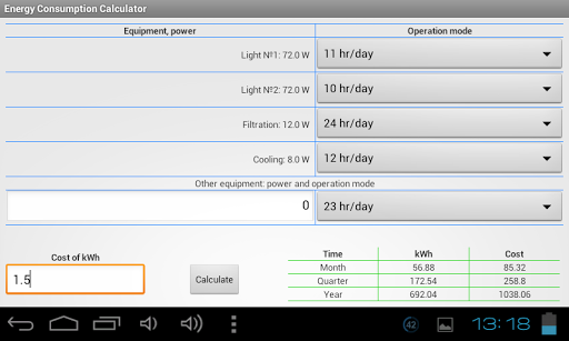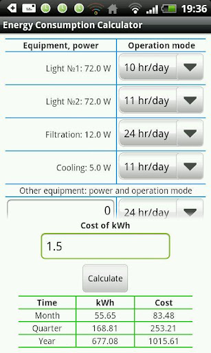 -Calculating the cost of energy consumption of aquarium for the month, quarter or year