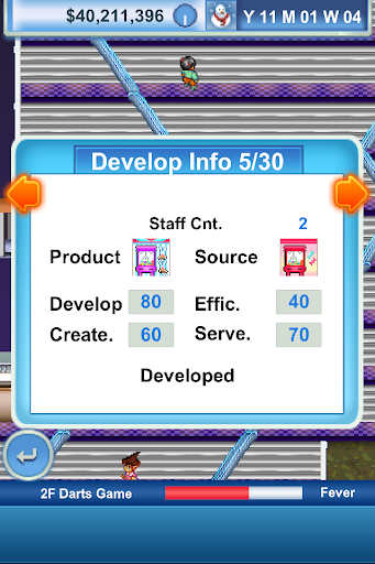 而每當遊戲機中心評價上昇一級,就可以吸引更多出色員工同投資項目,透過投資項目可以增加遊戲機中心的規模同顧客!