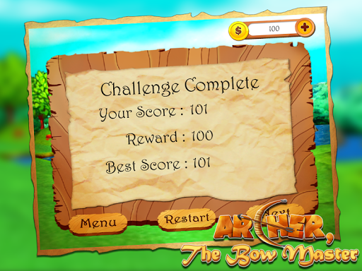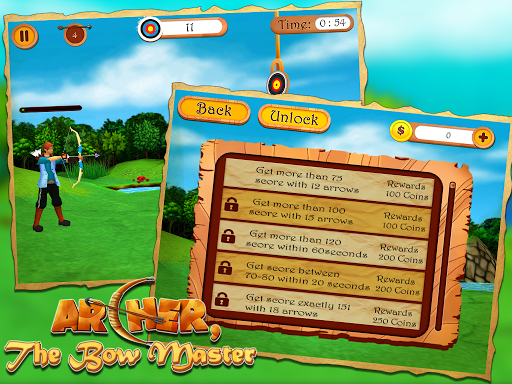 • Challenge mode: Try to get more than 75 point with 12 arrows. Also, clear top 3 levels out of total 15 levels and get rewarded with coins which you can use to buy the ‘Super arrow’.