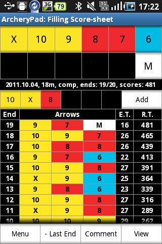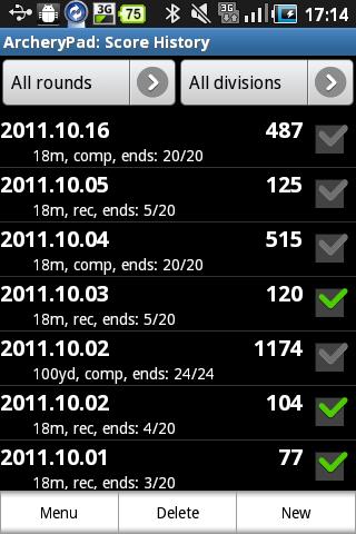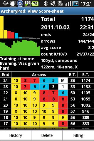 History of the results stored in the application and allows you to filter Score-sheets by type of bows and rounds.