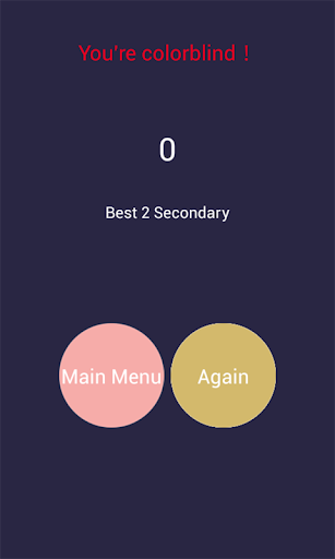 A very interesting game,Clean interface,Suitable color.Test your reaction speed of hand and brain,Randomly generate a variety of colors of the text,What is the color of the text. are You colorblind?