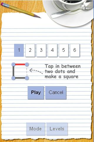 The school day's classic 'Connect the dots and make a square' game remastered and revived. Just tap between two dots, connect the dots with a line and make a square. Play against your mobile or android device. Win the game by making maximum numbers of square or occupying maximum area.