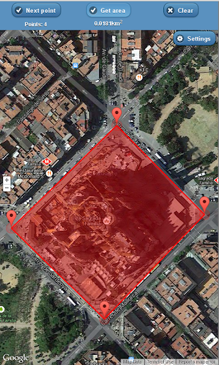 4. Press “Get area” button to have the area calculation result under the button with a red polygon that marks it on the map.
