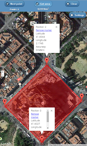 Area Meter allows you to calculate the area of a selected region. You just need to select a few locations in order to define the region using GPS. You need to have Internet connection enabled. The region will be displayed on the map and the area calculation will be done automatically.