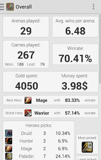 Hearthstone Arena Stats is an unofficial Hearthstone game app that helps players track and review Their efforts in the Arena.