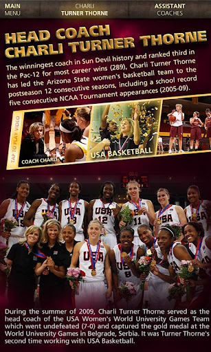 Head Coach Charli Turner Thorne has amassed the third most career wins in Pac-12 history. Now, Coach Thorne gives you never seen before insight into ASU’s superior player development program. Fans of the Sun Devils will see videos of the team’s success on and off the court, get an up close look at the rocking Wells Fargo Arena, and travel on a personalized journey on what it means to be ASU. It’s all of this and more with the official Arizona State women’s basketball mobile app!