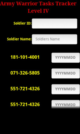 Here is the solution for the problem that all first line leader face in keeping track of the US Army's Warrior Tasks. This app will allow you to track the completion dates of all the current Level 4 Army Warrior Tasks for each of your Soldiers. Never again will you not know what has been and has not been trained. Also included is a quick look up to tell you what each task is. This app is designed to be used with the US Army's Soldiers Manual of Common Tasks (SMCT). They can be reached on your android device via the CARMA app or through US Army TBOC apps.