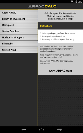 Arpac Calc: Packaging Cost, Material Usage and Capital Equipment ROI Calculator.