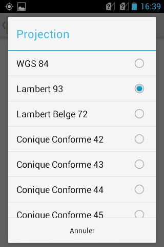 - Choix du système de coordonnées : Lambert 93, Coniques conformes 42 à 50, UTM, WGS84...
