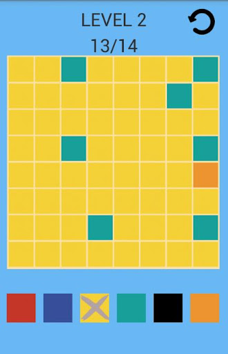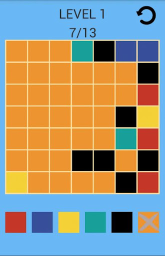 Initially you control the top left square and you have to combine it with the other squares pressing bottom buttons to flood every squares with the same color.