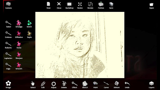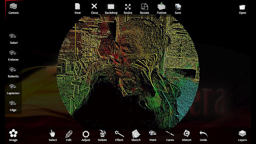Art Camera is the best professional photo art tool for your smartphone and tablet. It supports multiple photos in your workspace, and supports layers! You can copy part of one photo/layer and paste it into another, then edit or filter those layers separately. You can then lay them together, and then further flatten them into one image. Art Camera 2 also provides caricature features, allowing you to create funny or extreme styles of art work.