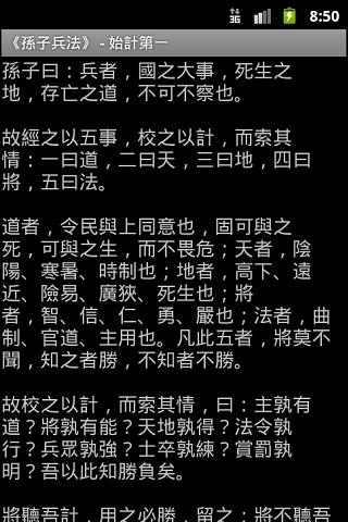 Use this app to read the full text of the Chinese military classic, the Art of War by Sun Tzu, in traditional Chinese, simplified Chinese, or English.