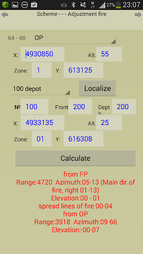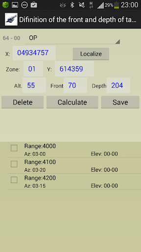 - calculation of the front, the depth and the center of the target according to the main direction of fire;