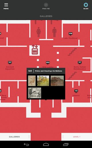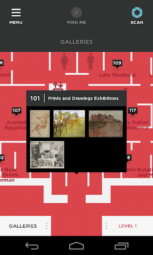 • Near You Now – Using the museum's indoor wayfinding technology, you can discover artworks in the collection that have interpretive content, such as film and audio, in any gallery. You can also use this feature to browse through the collection on a path you set yourself in the museum.