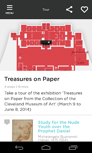 • Favorites – Save favorite works of art and share through Facebook or Twitter. You can also create personalized tours which can be shared with other visitors.