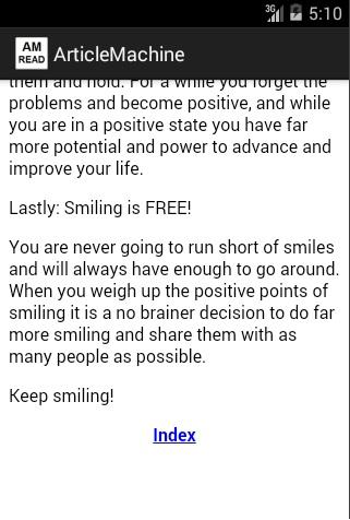 To go back to the Index start page, simply click on the Index link, at the bottom of each article page.