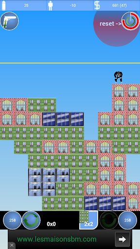 But be warned, the construction site will be fraught with dangers: giant monkeys, direct descendants from King Kong, are painting the town red, and the aliens are not willing to let you reach the stars. You'll have to arm yourself against these threats, pile up the prefab blocks faster and faster, and never give up... But to do so, you will have to generate enough income to buy the blocks.