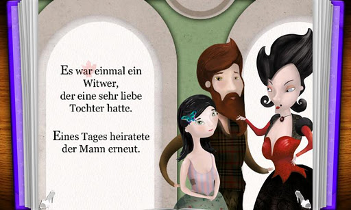 Handlung, Bücherei, Märchen, Schule, Buch, Kinder, berühren, lernen, infantil, lehren, Moral, Stiefmutter, Stiefschwester, Prinz, gute Fee, Mäuse, Katze, Kutscher, Pferde, Pferdekutsche, Touchybooks, touchy, books.