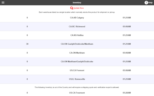 We maintain a database internally of over 1,000,000 products including all the distribution costs and inventory throughout North America. For Canadian clients we include inventory at US warehouses that service Canada as well. For US Clients we give them access to Canadian warehouses. This database is updated every night and in real time when you click on the Inventory tab for any product.