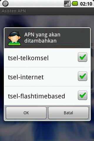 Asisten APN adalah program yang secara otomatis menambahkan konfigurasi APN operator2 di Indonesia,utk handset Android. Aplikasi ini akan secara otomatis mendeteksi operator yg digunakan(jika gagal,pengguna bisa memilih sendiri)