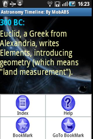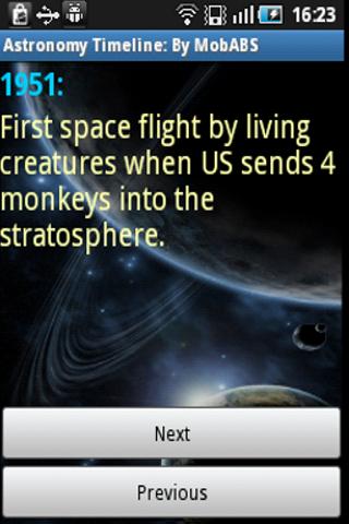 This app helps open oneself to the amazing history of astronomy by listing all the great events in chronological order.