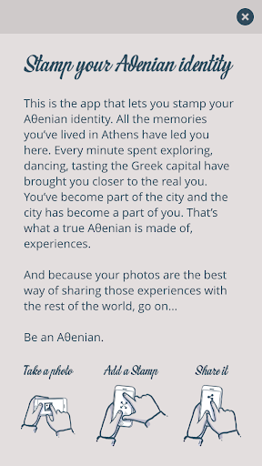 Download the App. Take a Photo. Add a Stamp. Share it. Be an Aθenian.