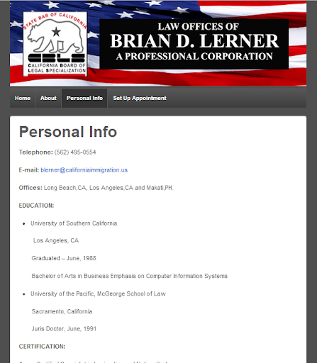 The Immigration Law part of the Law Offices of Brian D. Lerner, APC handles cases arising from business visas, work permits, Green Cards, non-immigrant visas, deportation, citizenship, appeals and all areas of immigration. The Law Offices of Brian D. Lerner, APC does EB-5 Investor Visas, H-1B Specialty Occupation, L-1 Intracompany Transferee, E-2 Treaty Investor, E-1 Treaty Trader, O-1 Extraordinary Ability among others. We also do K-1 Fiancee and K-3 Spouse Visas. Regarding immigrant visas for the Green Card, we do PERM and advanced degree PERM, Family Petitions, and Extraordinary Alien Petitions. In addition to affirmative petitions, we represent people in people in deportation and removal hearings, including political asylum, withholding of removal, and convention against torture cases. Mr. Brian Lerner handles all types of immigration cases, but does a significant amount of deportation cases. As a deportation attorney, he is able to apply for many types of relief in Immigration Court, such as Cancellation of Removal, Asylum, Convention Against Torture, Adjustment of Status and more.