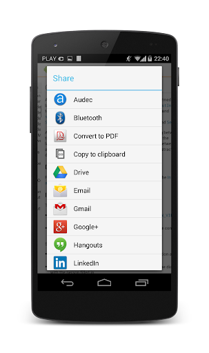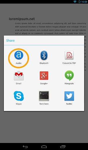 Select desired text in Your app and share it to Audec.